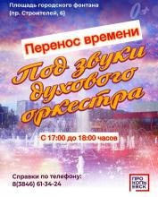 Обращаем ваше внимание, что в сентябре оркестр будет работать на площади городского фонтана по С 17:00 до 18:00!