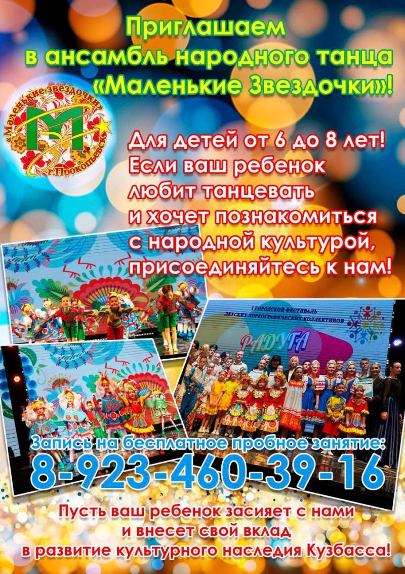 Ансамбль народного танца «Маленькие Звездочки»: ждем детей 6-8 лет. Телефон для записи 8-923-460-39-16