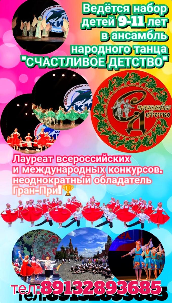 Ансамбль народного танца «Счастливое детство»: ждем детей 9-11 лет. Телефон для записи 8-913-289-36-85