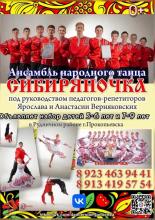 Ансамбль народного танца «Сибиряночка»: ждем детей 5-6 и 7-9 лет Телефоны для записи 8-923-463-94-41 или 8-913-419-57-54