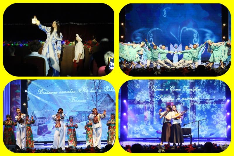 Яркими рождественскими звездочками «загорались» на сцене выступления ансамблей народного танца «Сибирские выкрутасы» и «Сибиряночка», «Счастливое детство» и хореографической студии «Маленькие звёздочки», ансамбля классического танца «Академия», инструменталистов аккордеон-дуэта «Идиллия», а также Ирины и Елены Гольцевых, солистов-вокалистов Наируи Аревшатян и Игоря Парипсы, Влада Решетникова и Натальи Минеевой, Владимира Свистельникова, Андрея и Екатерины Лаврентьевых, вокальных ансамблей «Вива», «На бис» и «Забава», хит-группы «Комплимент» и фольклорного ансамбля «Скоморохи».