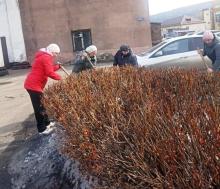 - Ворошили и убирали оставшийся на территории ДК снег.