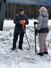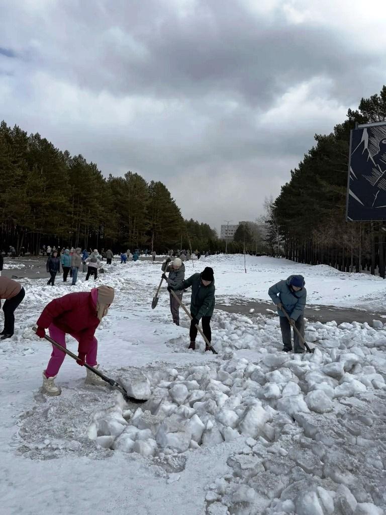 Трудовой десант из прокопьевских учреждений культуры, в числе которого были и артемовцы, ворошил оставшийся снег и наводил порядок в Молодежном парке, на Аллее Героев, у Стелы «Прокопьевск – Город трудовой доблести».