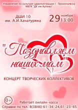 В честь праздника главных людей на свете – мам – творческие коллективы ДК им. Артема подарят зрителям коктейль из позитивных эмоций, творчества и замечательного настроения!