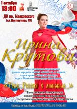 Сольную программу прокопьевской публике представит Ирина Крутова, солистка Государственного академического русского народного ансамбля «Россия» им. Л. Зыкиной, лауреат премии «Имперская культура», педагог Образовательного центра Юрия Башмета, обладательница звания «Национальное достояние России».