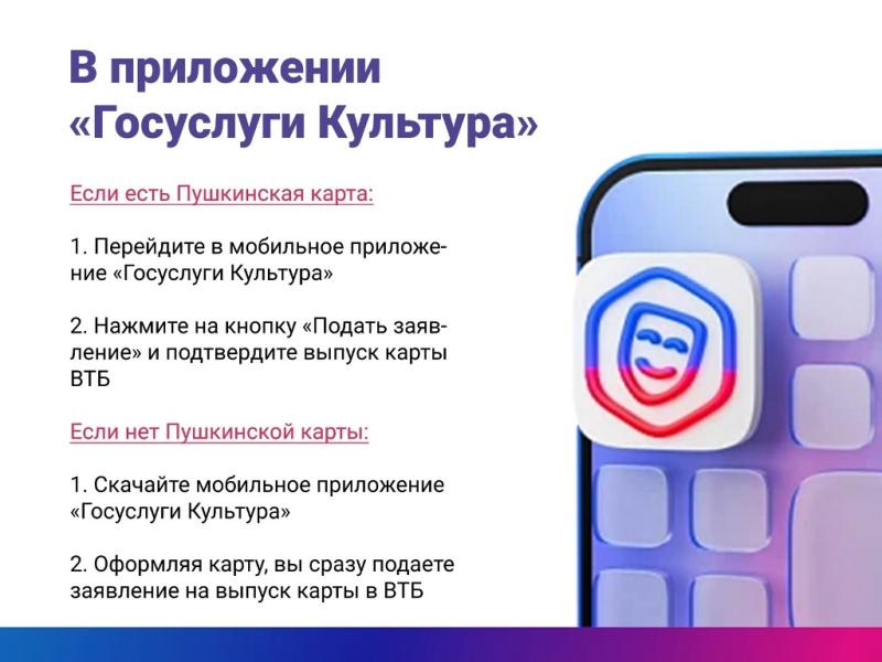 - Если у вас виртуальная карта: зайдите в приложение «Госуслуги Культура» и прими новые условия от ВТБ.