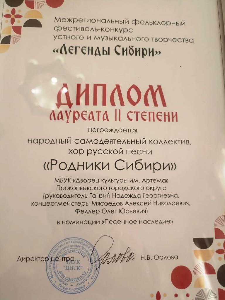 В минувшую пятницу, 31 октября, Гала-концертом завершился VII Межрегиональный фольклорный фестиваль-конкурс устного и музыкального творчества «Легенды Сибири». Концерт, прошедший во Дворце культуры г. Салаира, собрал лучшие самодеятельные коллективы со всей области. В их числе был и народный коллектив хор русской песни «Родники Сибири» (художественный руководитель – Надежда Ганзий) Дворца культуры им. Артема.