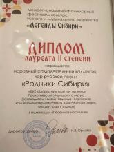 По итогам фестиваля-конкурса коллектив награжден дипломом Лауреата II степени в номинации «Песенное наследие».