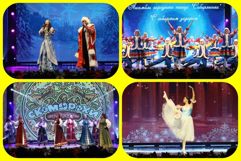 Яркими рождественскими звездочками «загорались» на сцене выступления ансамблей народного танца «Сибирские выкрутасы» и «Сибиряночка», «Счастливое детство» и хореографической студии «Маленькие звёздочки», ансамбля классического танца «Академия», инструменталистов аккордеон-дуэта «Идиллия», а также Ирины и Елены Гольцевых, солистов-вокалистов Наируи Аревшатян и Игоря Парипсы, Влада Решетникова и Натальи Минеевой, Владимира Свистельникова, Андрея и Екатерины Лаврентьевых, вокальных ансамблей «Вива», «На бис» и «Забава», хит-группы «Комплимент» и фольклорного ансамбля «Скоморохи».