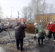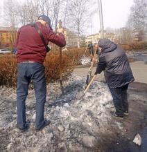 - Ворошили и убирали оставшийся на территории ДК снег.