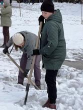 Трудовой десант из прокопьевских учреждений культуры, в числе которого были и артемовцы, ворошил оставшийся снег и наводил порядок в Молодежном парке, на Аллее Героев, у Стелы «Прокопьевск – Город трудовой доблести».