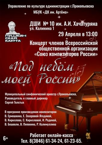 Участниками концерта «Под небом моей России» станут композиторы из Кемерова, Новосибирска, Томска, Красноярска и Москвы, входящие во Всероссийскую общественную организацию «Союз композиторов России».